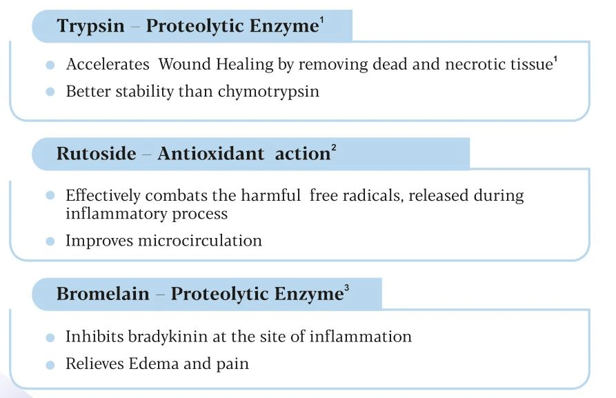 Trypsin 48mg + Bromelain 90mg + Rutoside 100mg + Diclofenac Sodium 50mg Tablets